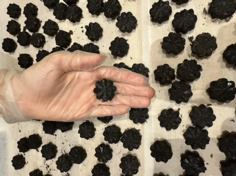 Våra puckar består av två naturliga ingredienser – biokol och biogödsel. Biokolet hjälper jorden att hålla kvar vatten och näring, medan biogödseln ger växterna den näring de behöver för att växa starkt och friskt.